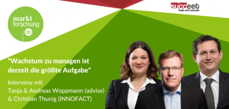 Als diesjährige WdM-Sponsoren geben unsere Geschäftsführer Tanja und Andreas Woppmann in einem Interview mit marktforschung.de bereits interessante Einblicke in unsere spannenden Vorträge, die im Mai erwartet werden können. Mit Managing Partner von INNOFACT, Christian Thunig, beantworten sie außerdem Fragen nach dem "New Normal" bei advise sowie nach aktuellen Trends in der Marktforschungsbranche.