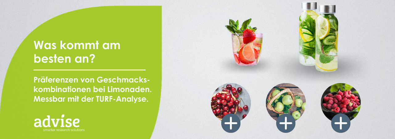 |Ihr möchtet eine neue Limonaden-Produktlinie auf den Markt bringen und über eine Umfrage ermitteln, wie viele Geschmacksrichtungen in welcher Kombination für einen Launch nötig sind, um die größtmögliche Anzahl an Käufer zu erreichen? Dann solltet ihr nicht zögern, eine TURF-Analyse durchzuführen.